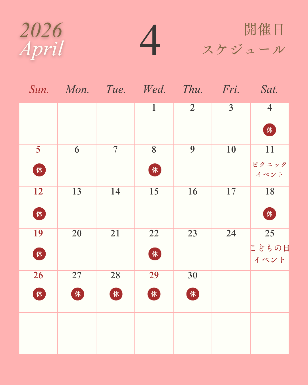 ※土曜日は親子クッキング(お昼の提供)あり 大人1人500円、子どもは無料